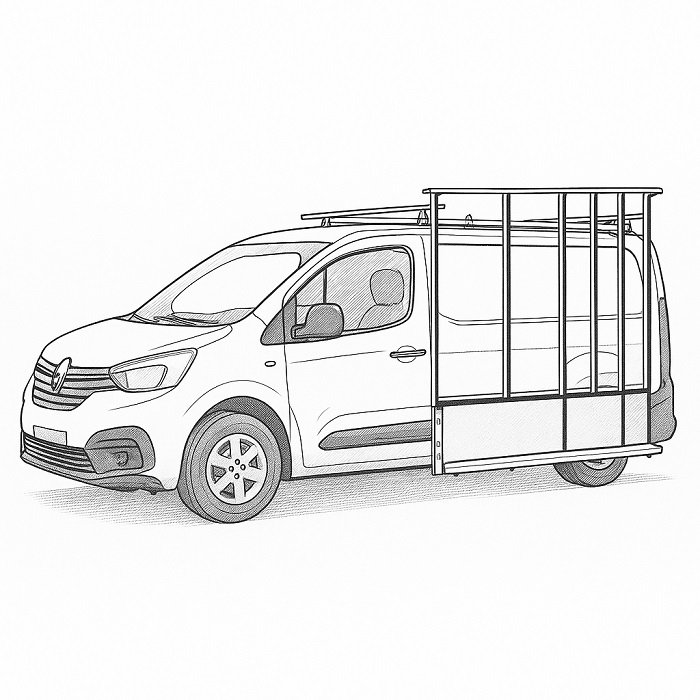 Käytännöllinen turvatoimenpide, kun kuormaat lasia. Tangot voidaan asettaa tukevan metallikaaren päälle, joten ne eivät kaadu ja vahingoita lasia.